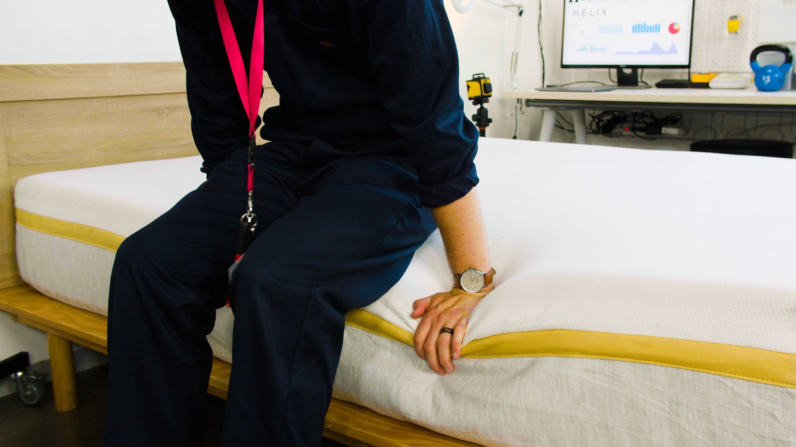We test each mattress using various sleep positions to observe whether a mattress is better suited for side, back, or stomach sleeping. We roll around the surface and sit on the edges to gauge ease of movement and perimeter support.