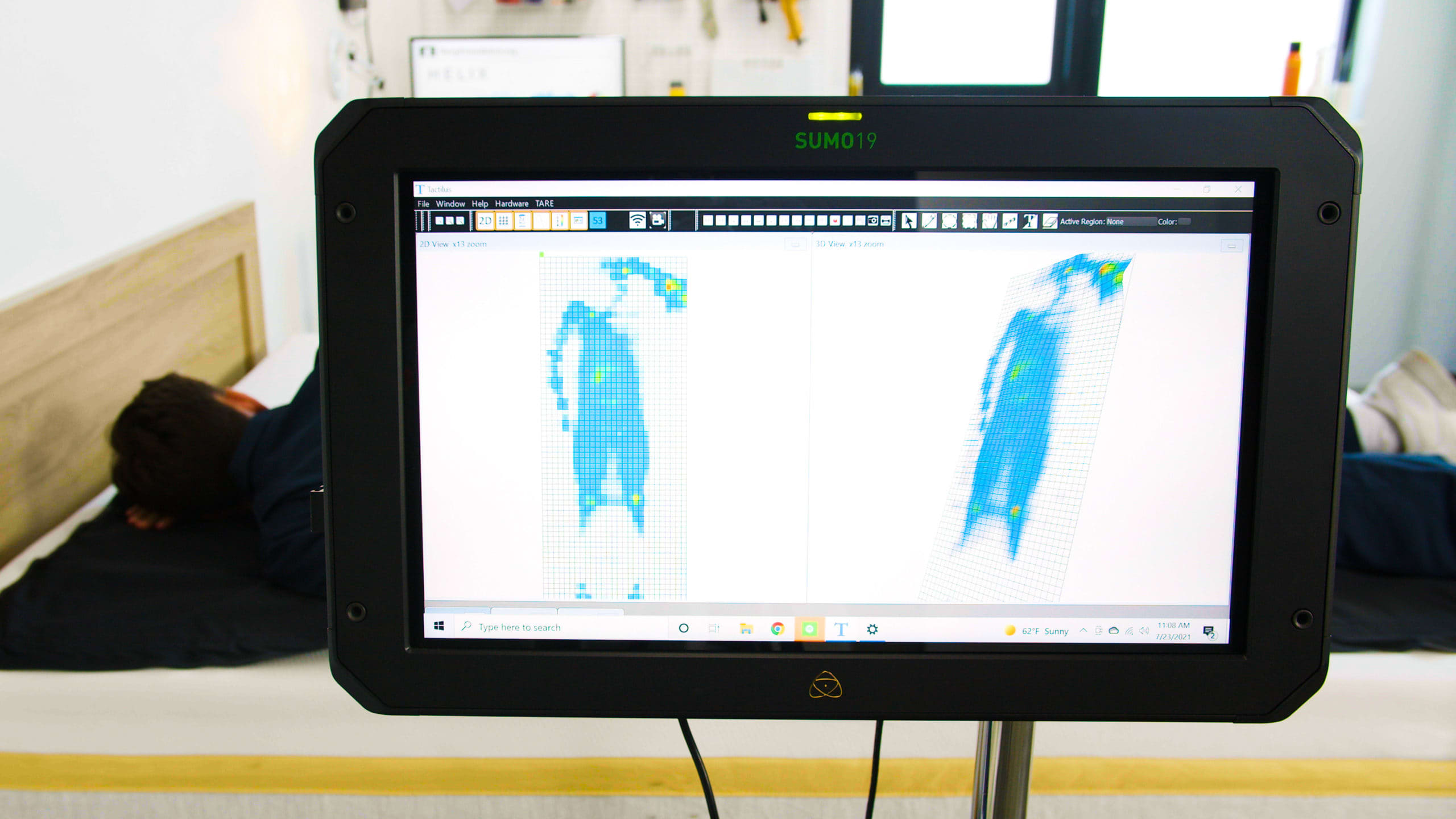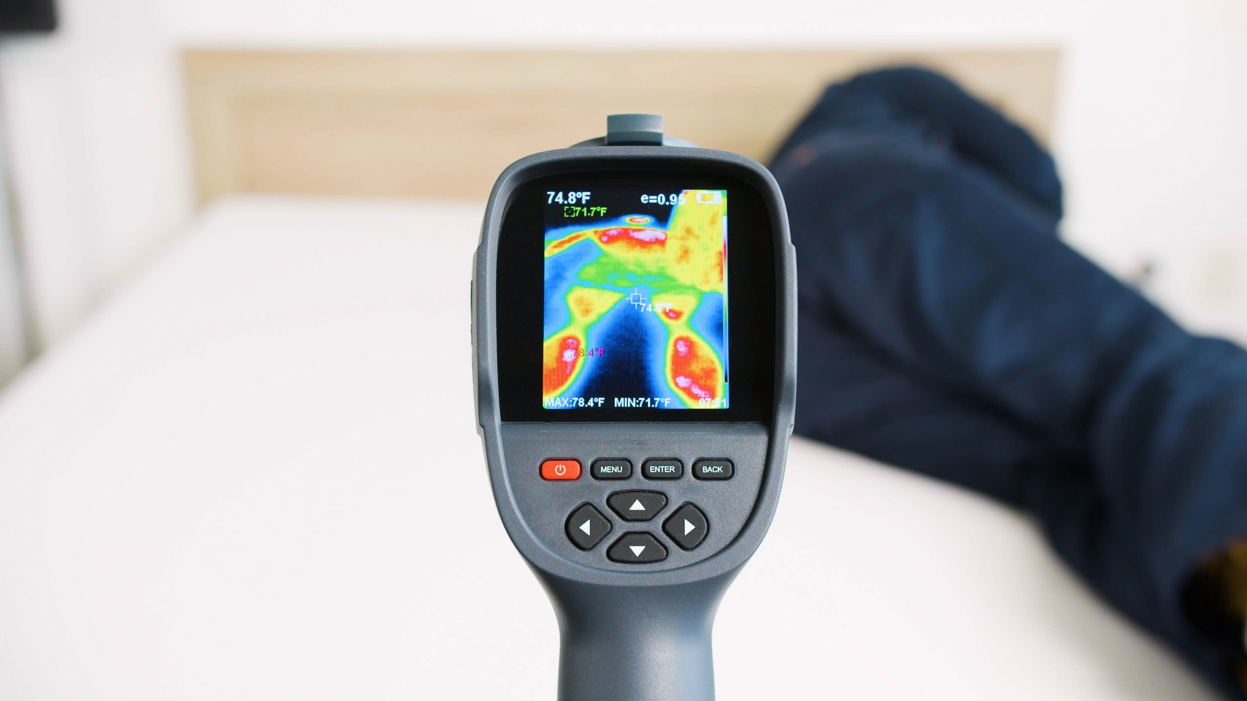 Our testers lie on the surface of each mattress to evaluate factors such as contouring and support. We also use specialized tools to measure performance criteria like pressure relief, heat retention, and motion isolation.